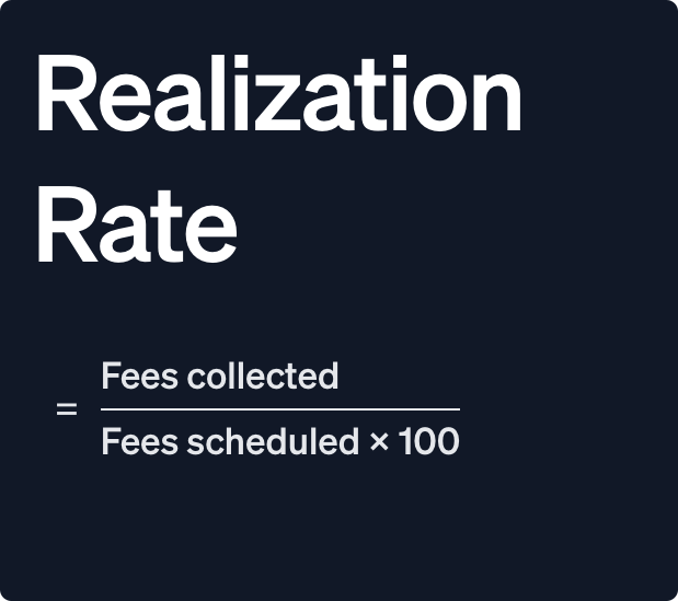 Realization Rate is equal to the total fees collected divided by the total fees scheduled.